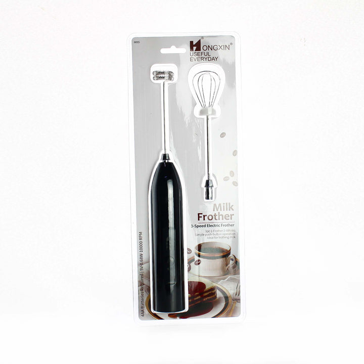 جهاز رغوة كهربائي محمول يعمل بالبطارية، مسوّق من قبل "HONGXIN"، يأتي برؤوس قابلة للتبديل، بما في ذلك خفاقة وملحق للرغوة، ومعبأ للبيع بالتجزئة.