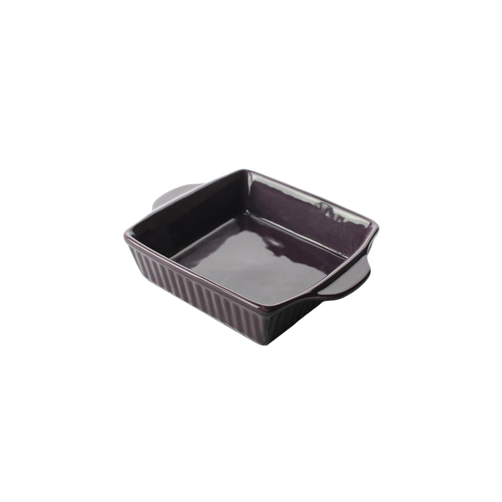 صينية مربعة من السيراميك باللون البنفسجي الغامق، مثالية لخبز الكيك أو اللازانيا أو التقديم المباشر.