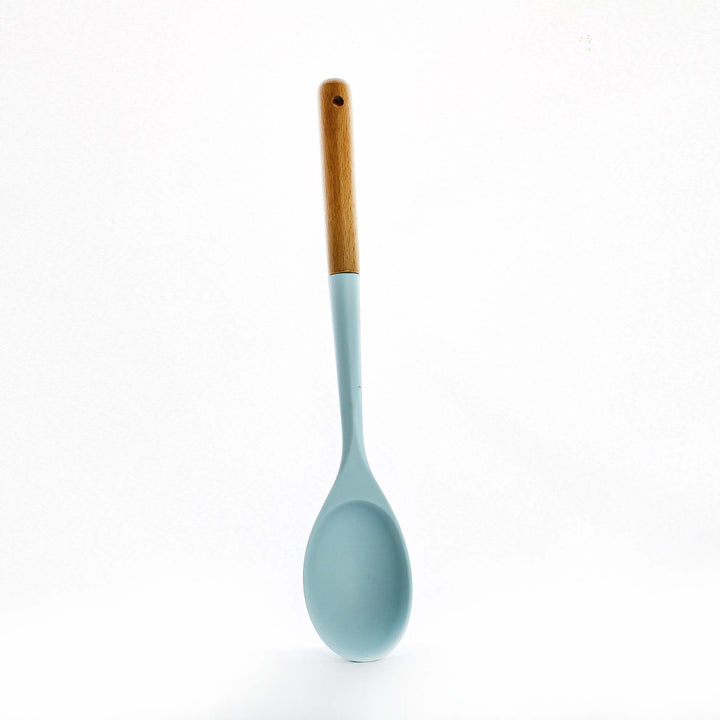 ملعقة تقديم صلبة من السيليكون برأس بلون الخزامى ومقبض خشبي طبيعي يحمل