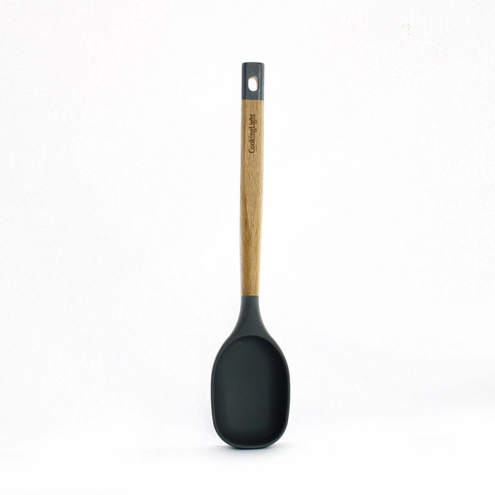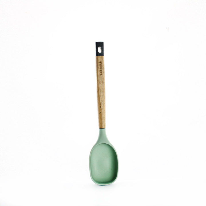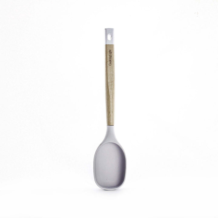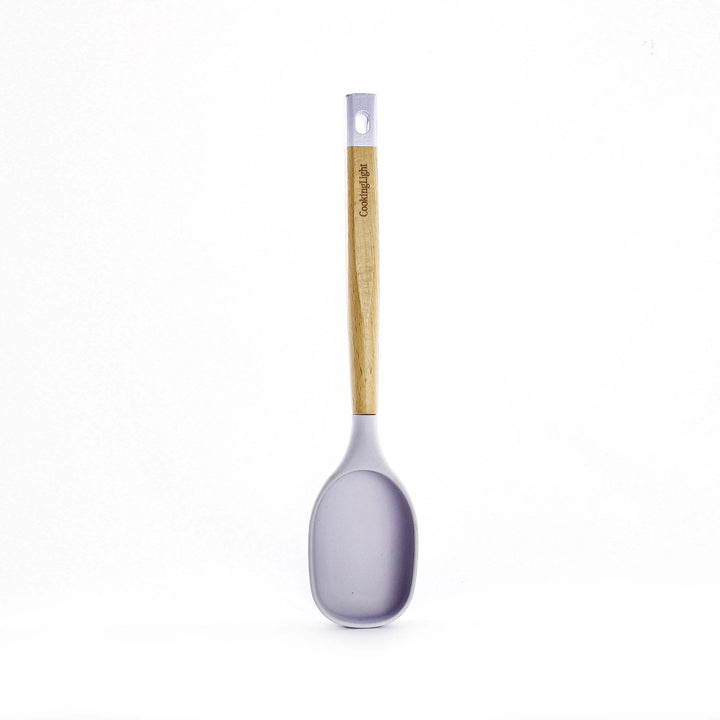 ملعقة تقديم صلبة من السيليكون برأس بلون الخزامى ومقبض خشبي طبيعي يحمل